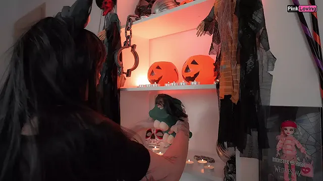 Halloween, Big, Exclusive, Solo Girl, Babe, POV, Goth, Role-Play, Schoolgirl, Pussy Rubbing, Brunette, Female Orgasm, Masturbation