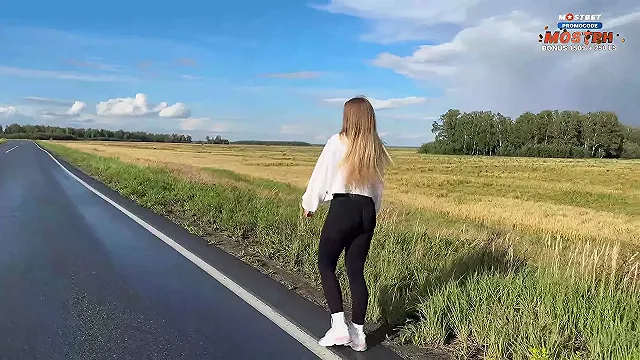 Hot Bitch Hitchhikes in Tight Leggings and Pays for the Ride with Sex