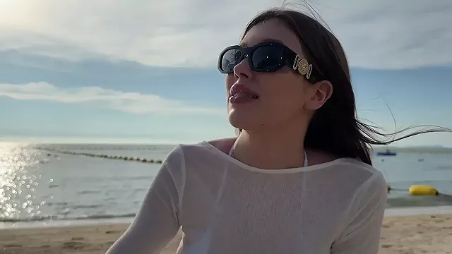 Natural, Babe, Big, Bikini, Cute, Beautiful, Paradise, POV, Public, Blowjob, Cumshot, Cowgirl
