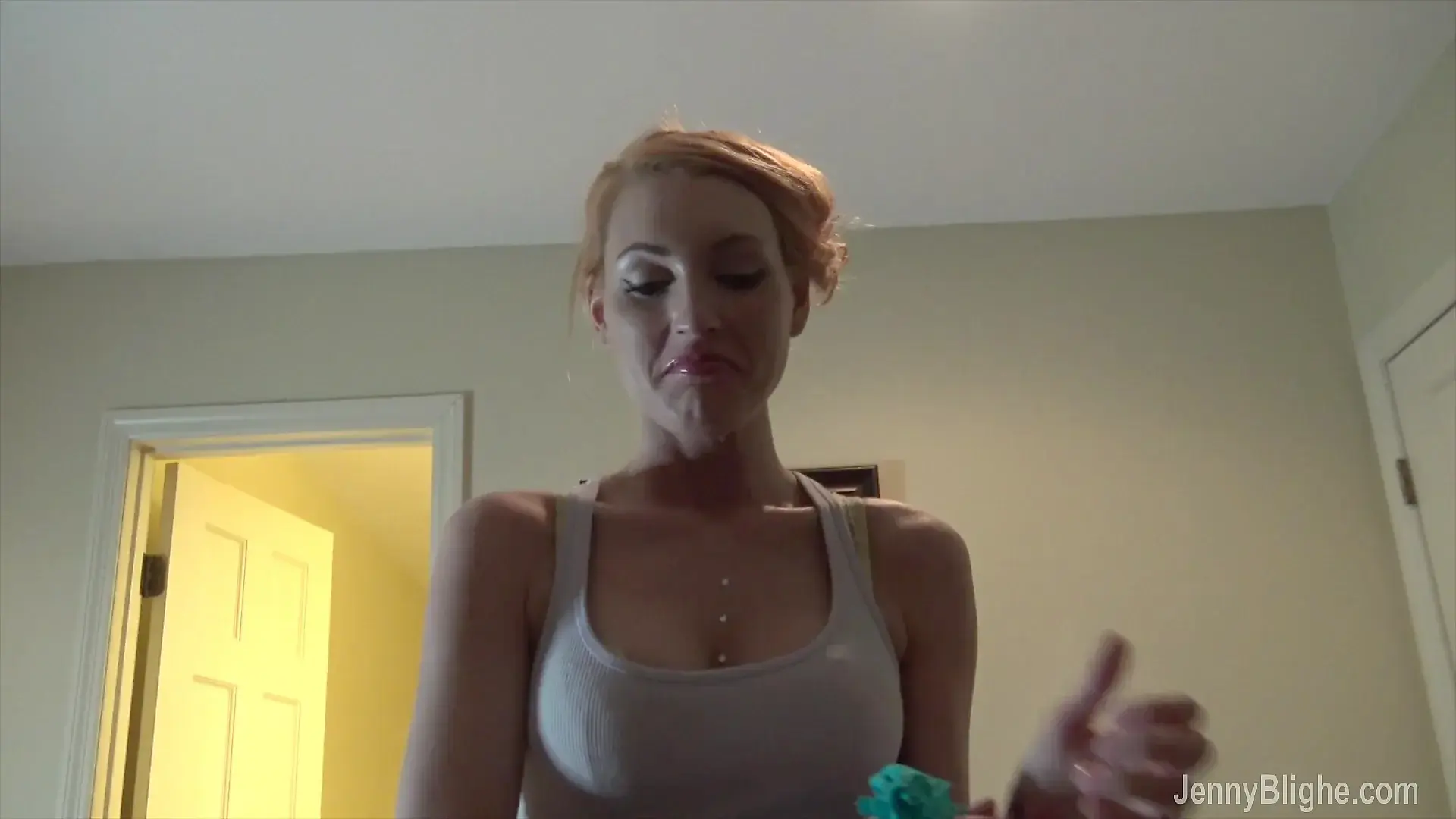 Lovely Girl with Tied Hands got Cum on Her Face