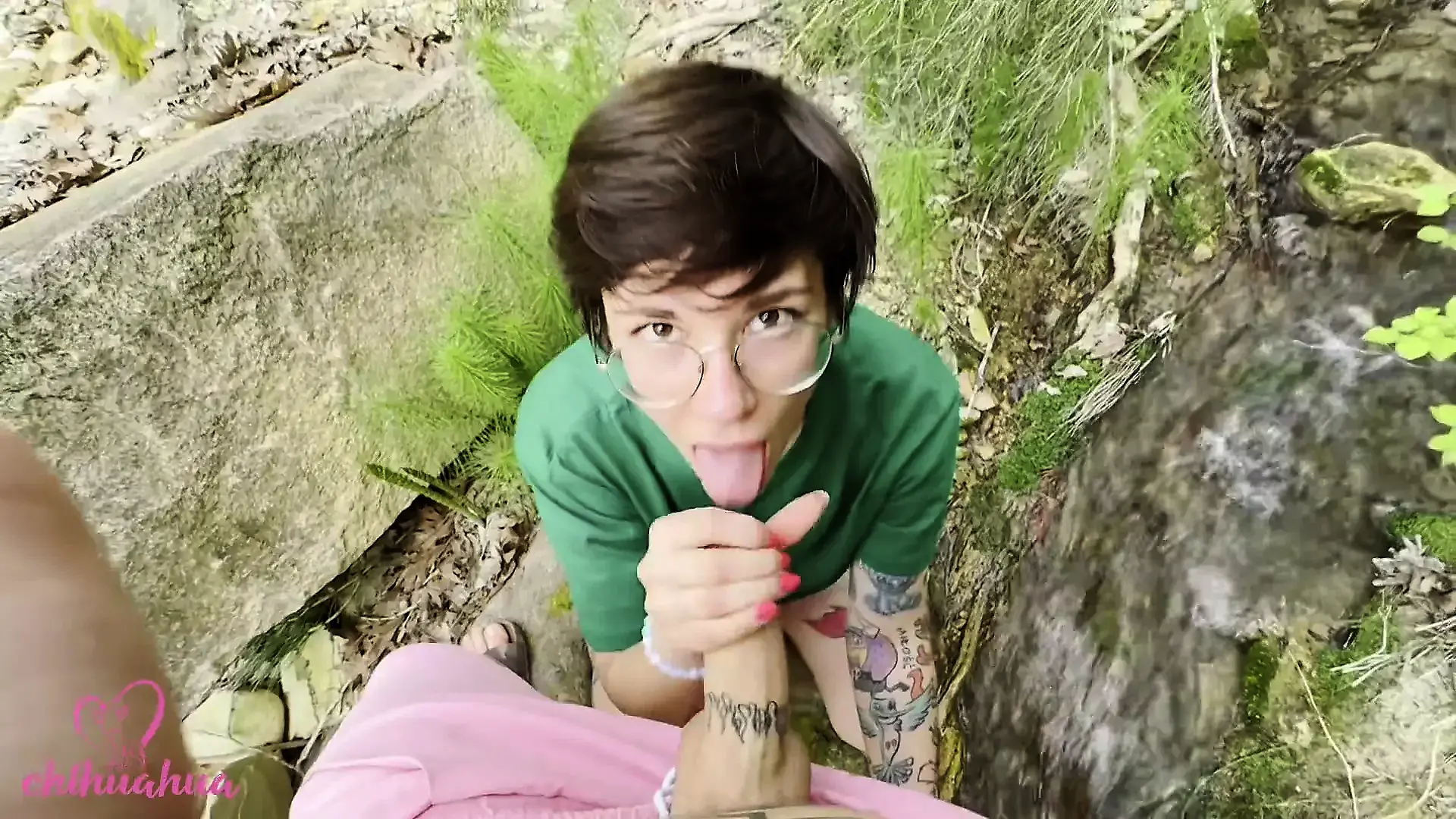 Best Blowjob in the Forest from a Blonde with Green Eyes