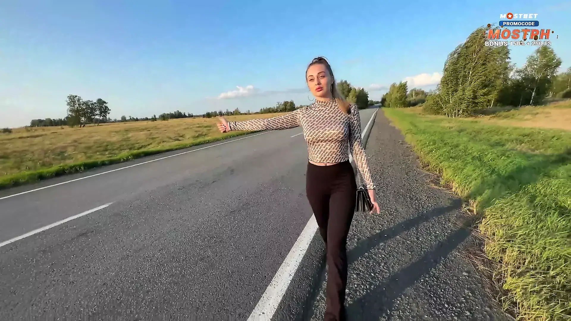 Hot Bitch Hitchhikes in Tight Leggings