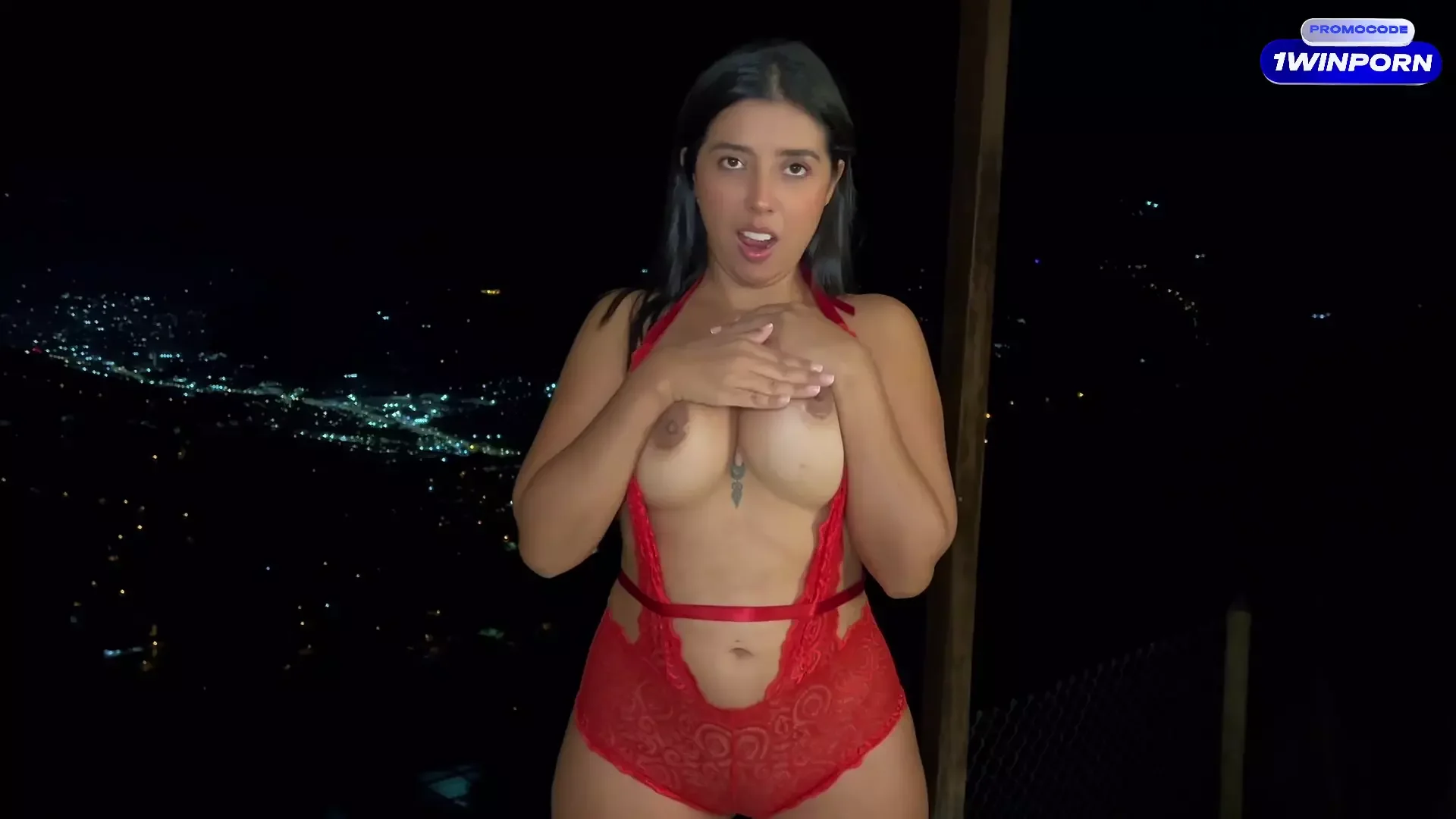 Female Orgasm, Outdoor, Balcony, MILF, Public, Big, Horny, Latina, Lingerie, Brunette, Slut, Blowjob, Big, Cumshot