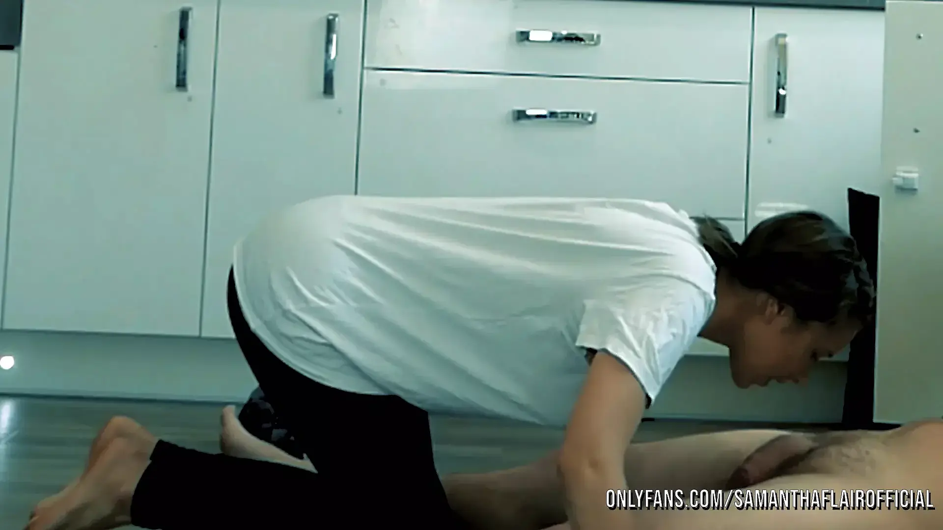 Stepsister Rubs Cock on Her Nylon Knee until He Cums