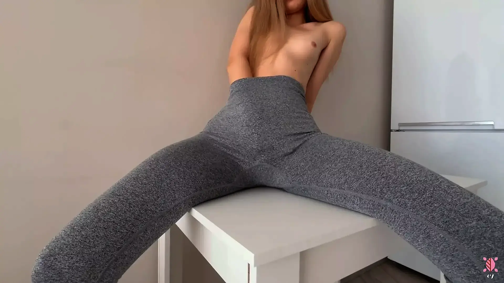 Girl Cum on the Table with Huge Leggings Squirt Ever
