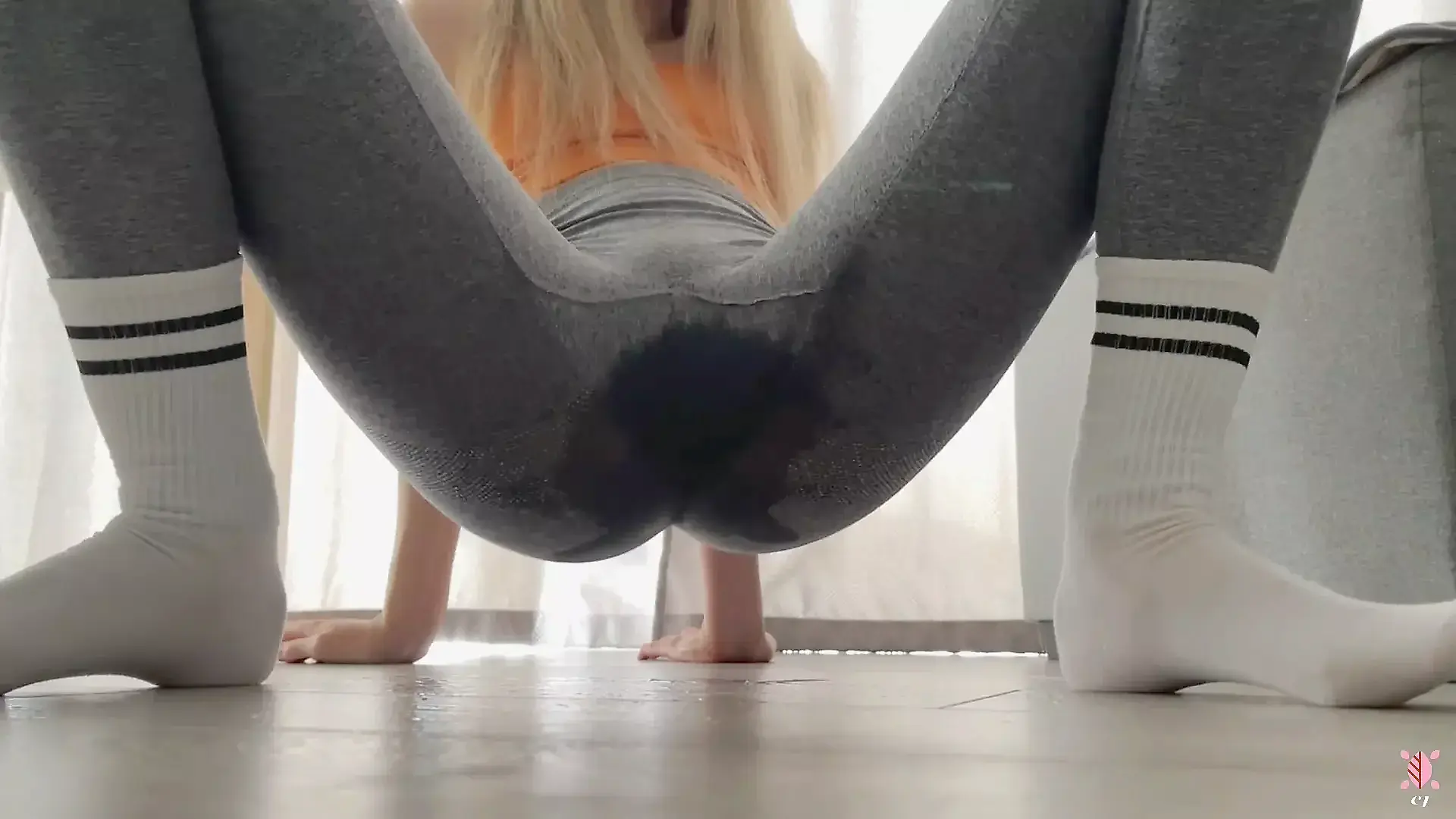 Fit Girl Squirts Through Leggings with Multiple Orgasms
