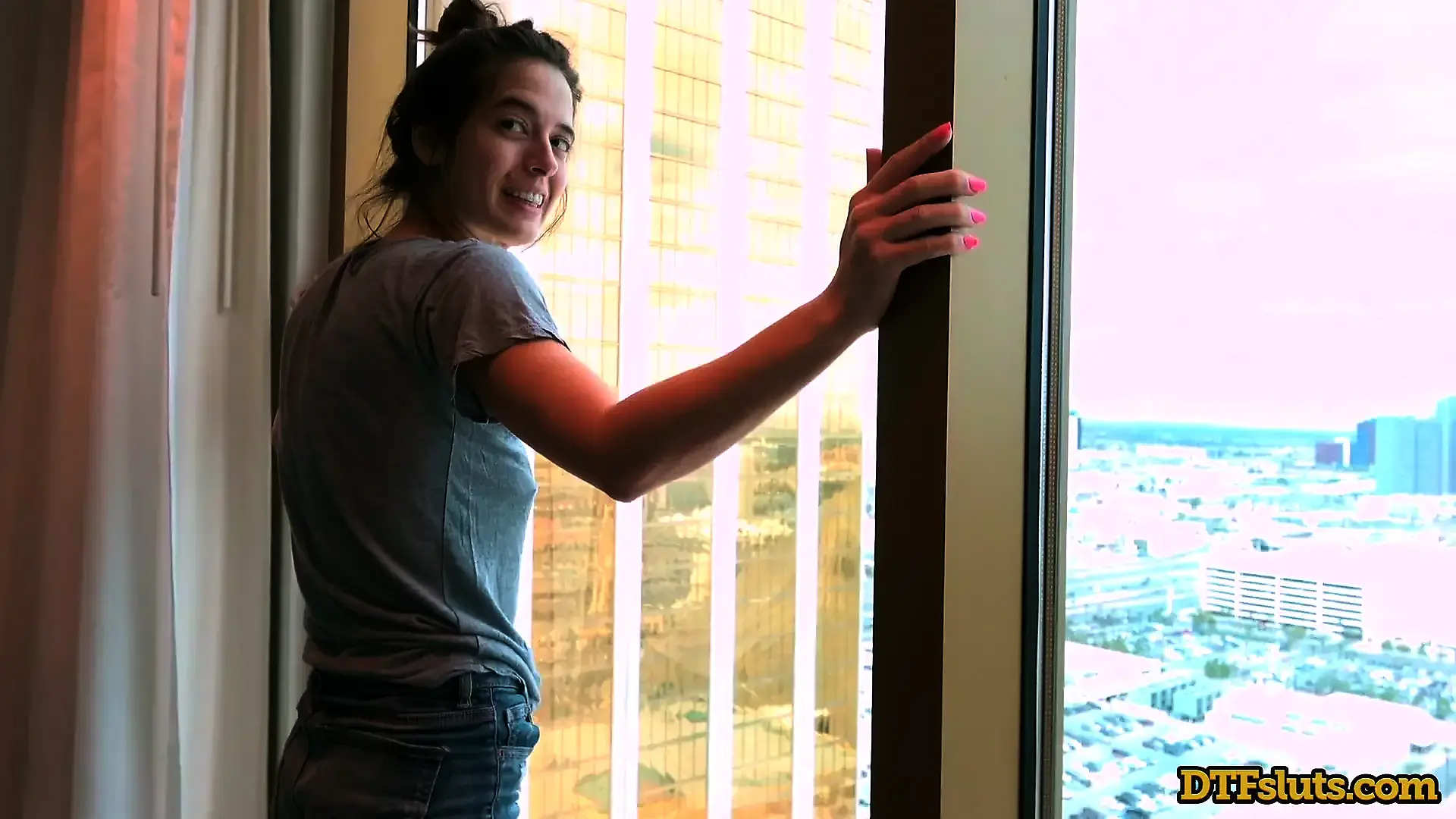 Milf Fucks 2 Cocks and get Anal & Pussy Creampie in Hotel Window / Pov