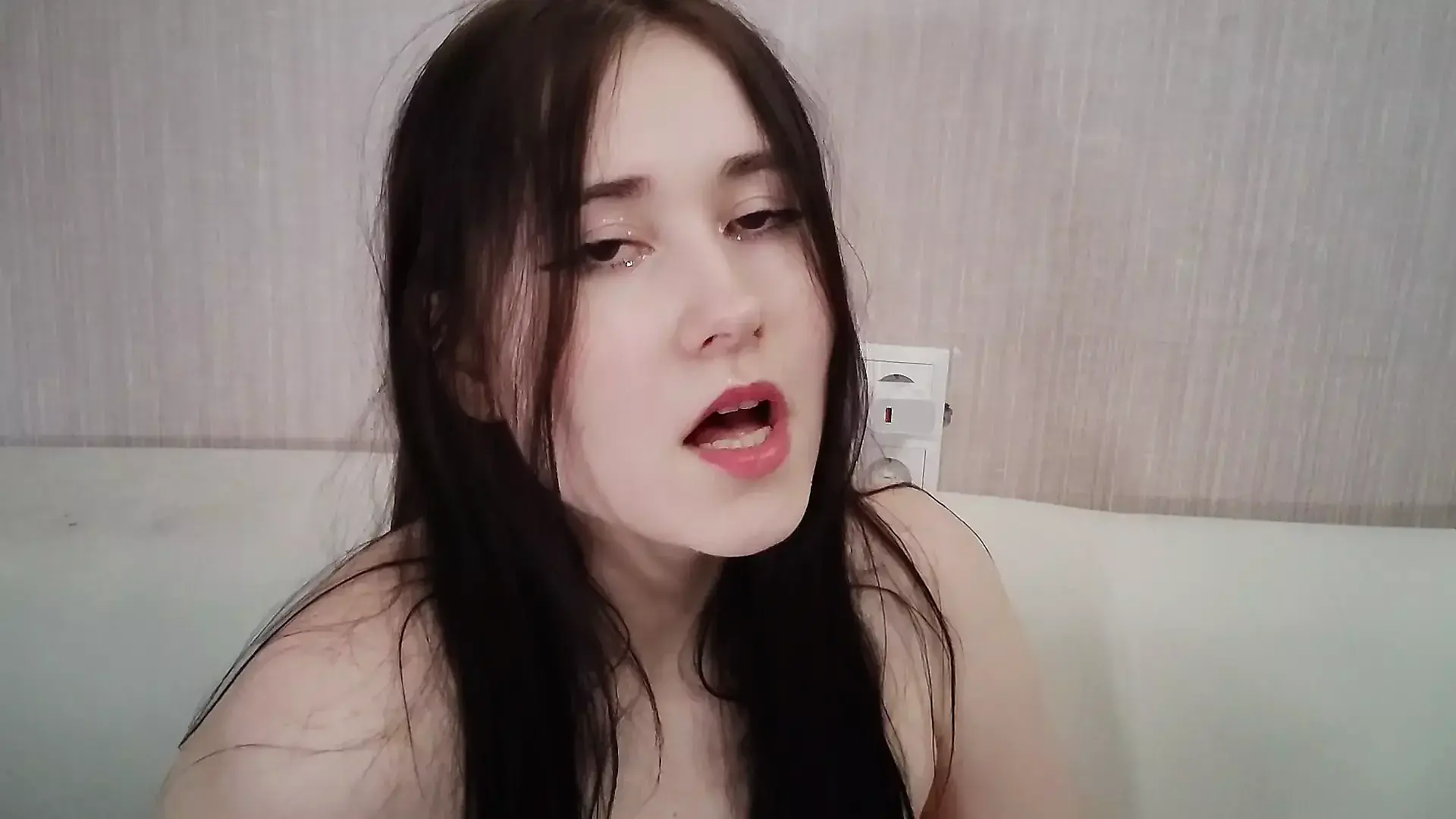 Cute College Girl Home Alone Moaning on the Parents Sofa