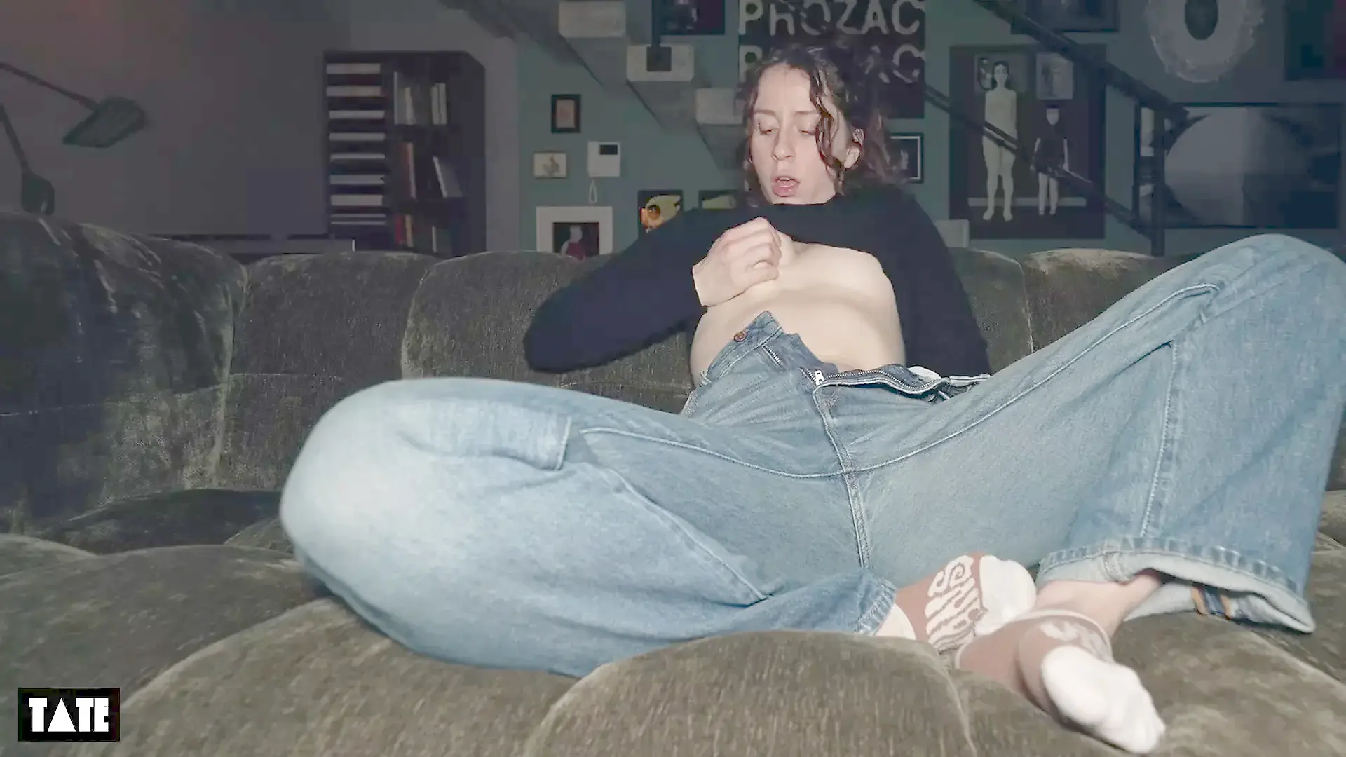 Cute College Girl Home Alone Moaning on the Parents Sofa