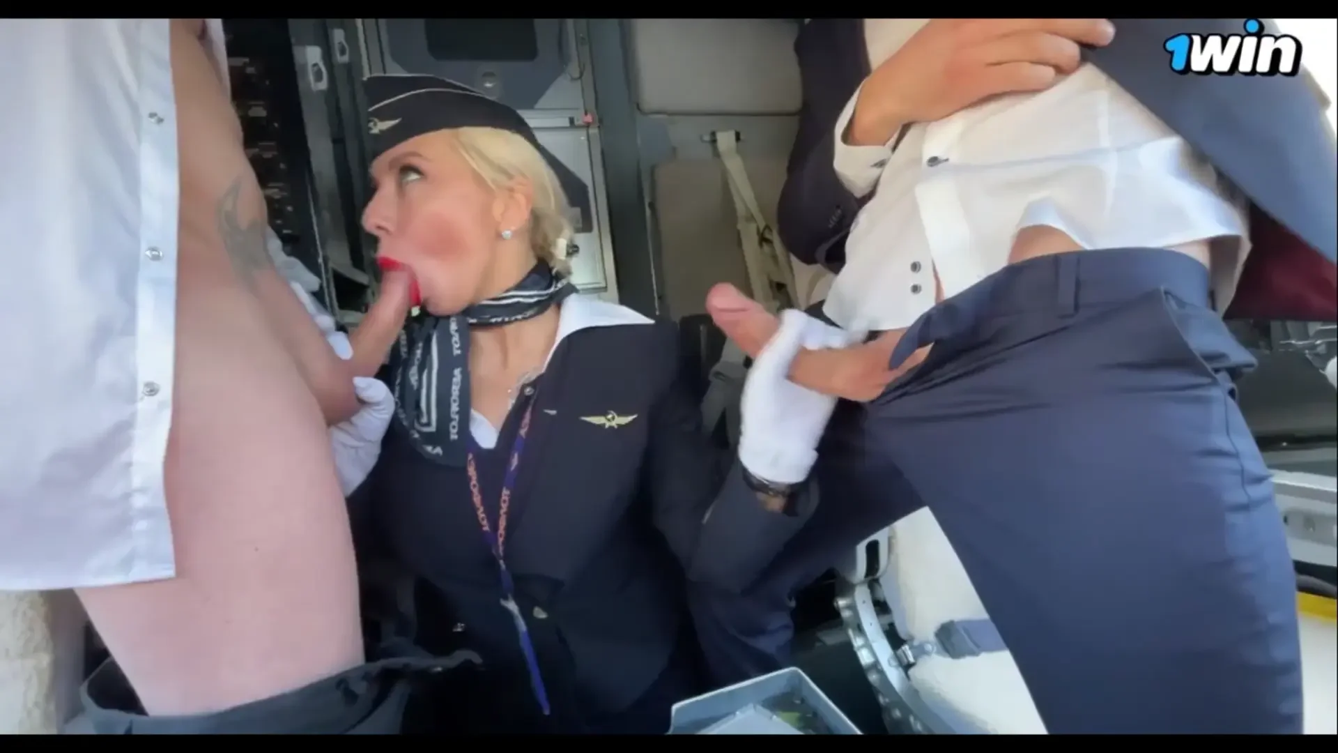 Flight Attendant in Submissive Gangbang