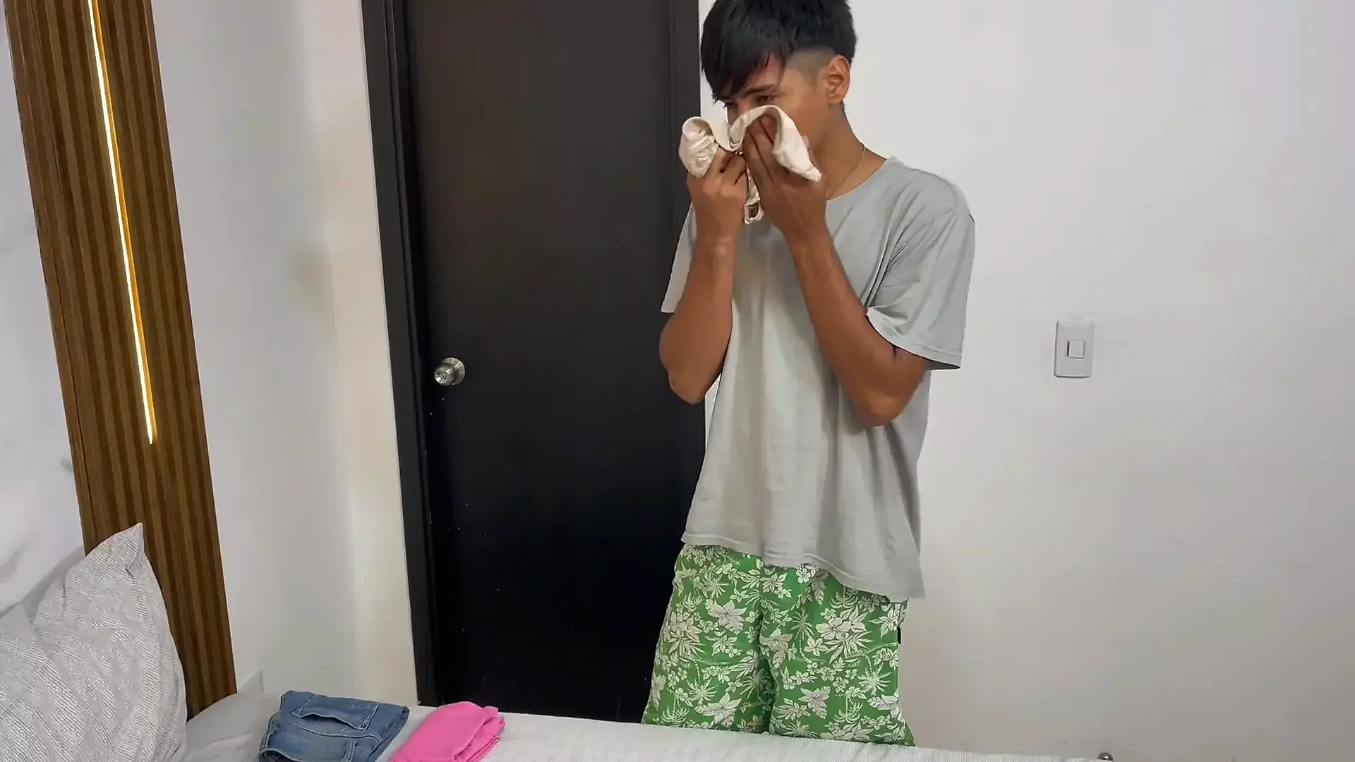 My Little Stepsister Catches Me Masturbating with Her Panties in Her Room.